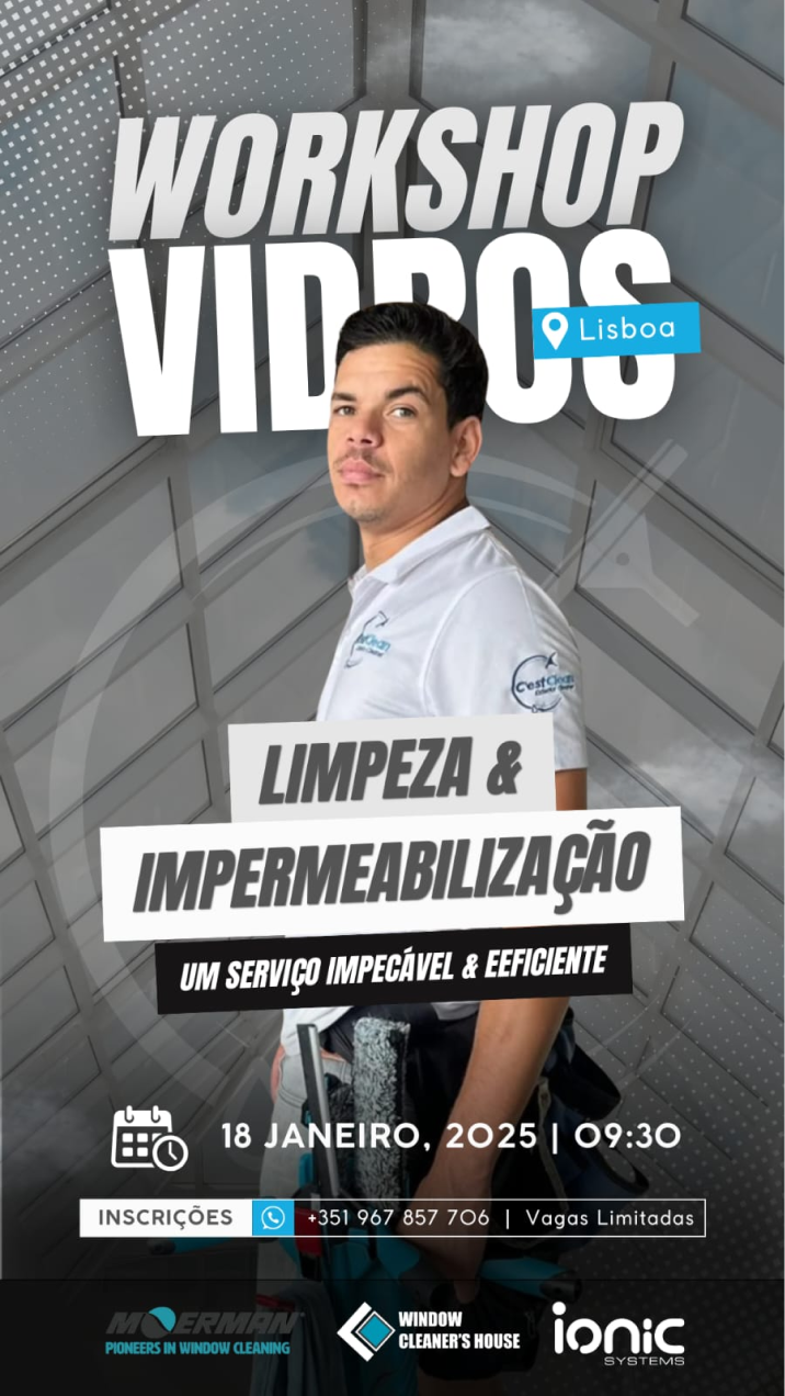 Nos tornamos referência no mercado, sendo a primeira empresa em Portugal a oferecer um workshop completo e especializado em limpeza de vidros.