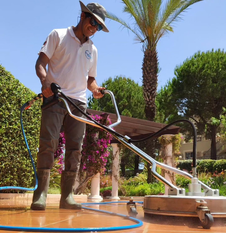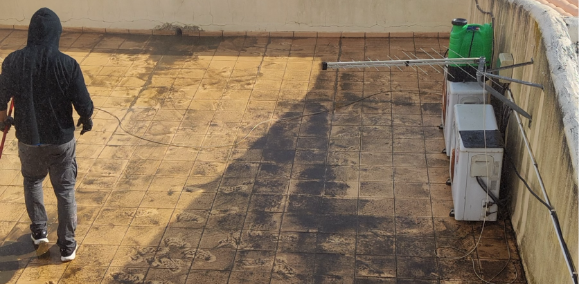 Terraços — limpeza profunda de piso e guarda-corpos, pronta para uso.